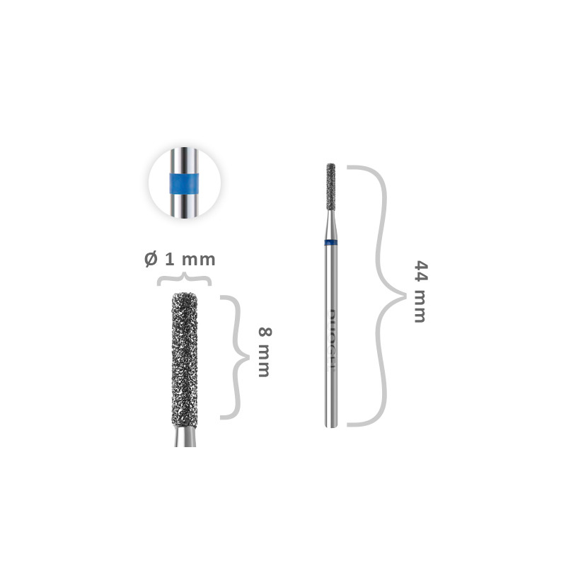 La taglierina a rullo Ø1,6 mm con striscia blu è una taglierina diamantata destinata alla preparazione delle cuticole attorno alle unghie.