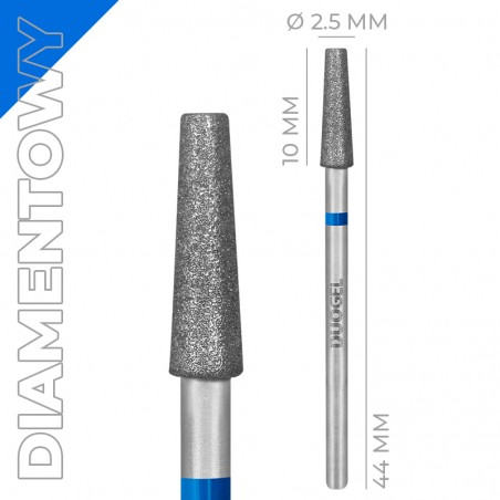 La fresa a cono smussato Ø2,5 mm con una striscia blu è una fresa diamantata destinata alla preparazione delle cuticole attorno alle unghie.