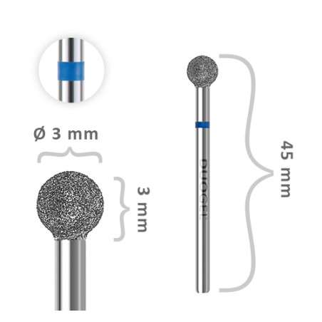 Frez DIAMOND Kulka Ø2,7mm z niebieskim paskiem, to diamentowy frez przeznaczony do opracowania skórek wokół paznokci.