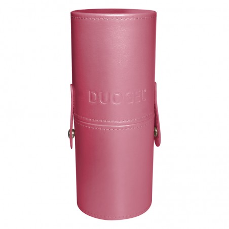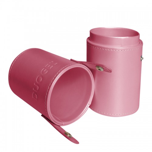 Piórnik na pędzle wykonany ze świetnej jakości eco skóry w kolorze różowym. Sztywna konstrukcja w kształcie tuby oraz zamknięcie na zatrzaski sprawia, że ochroni on pędzle przed zniszczeniem w transporcie, domu lub salonie kosmetyczny.