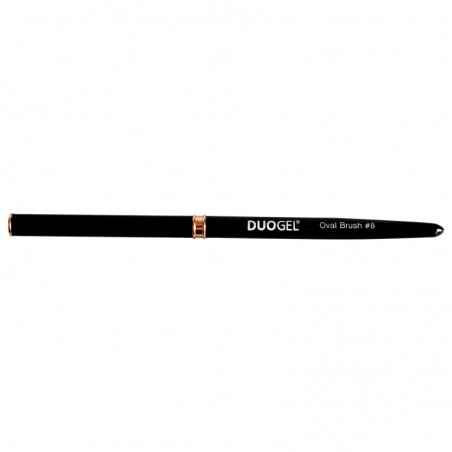 Pędzel do żelu o owalnym kształcie z wygodną zatyczką chroniącą włosie.