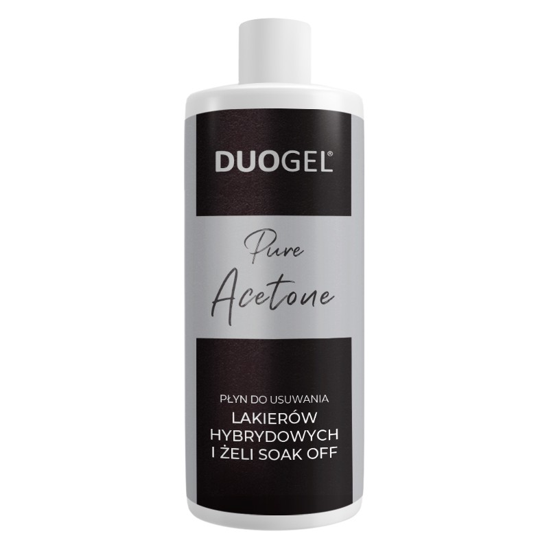 Czysty aceton do celów kosmetycznych. Idealny do odtłuszczania i oczyszczania płytki paznokciowej, a także do zdejmowania tipsów oraz usuwania lakierów hybrydowych żeli UV typu soak off.