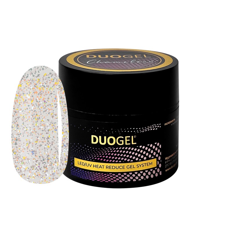 Żel CHAMELEON to budujący żel o gęstej konsystencji z pamięcią kształtu. Idealnie sprawdzi się do uzupełnienia metodą bez piłowania. Mnóstwo kolorowych drobinek sprawia, że nie potrzebujesz dodatkowo lakieru hybrydowego, aby Twoja stylizacja robiła efekt WOW! Sprawdzi się świetnie do frencha konstrukcyjnego lub efektu princess nails.