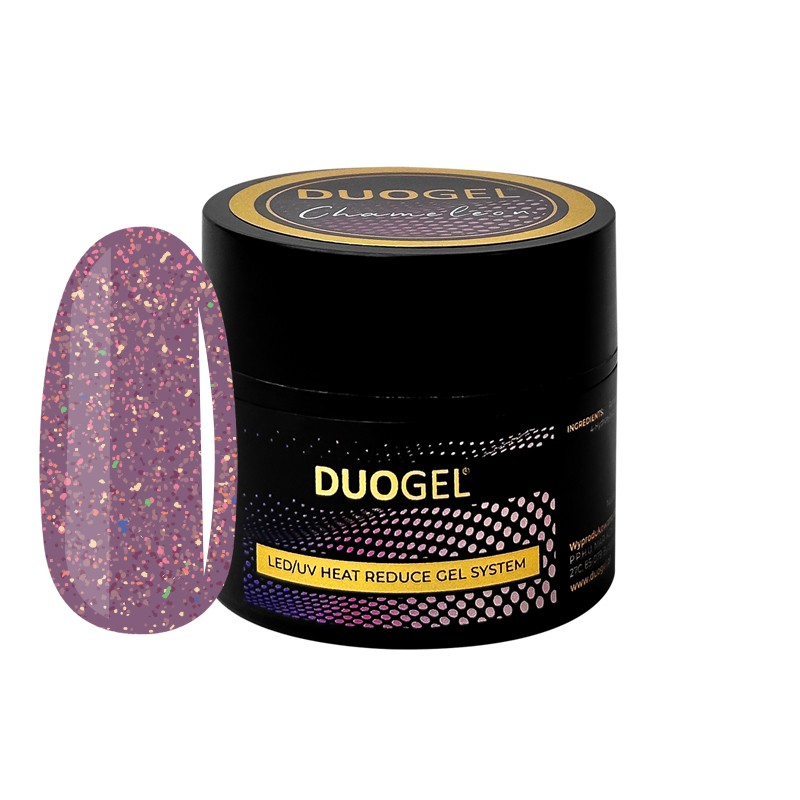 Żel CHAMELEON to budujący żel o gęstej konsystencji z pamięcią kształtu. Idealnie sprawdzi się do uzupełnienia metodą bez piłowania. Mnóstwo kolorowych drobinek sprawia, że nie potrzebujesz dodatkowo lakieru hybrydowego, aby Twoja stylizacja robiła efekt WOW! Sprawdzi się świetnie do frencha konstrukcyjnego lub efektu princess nails.
